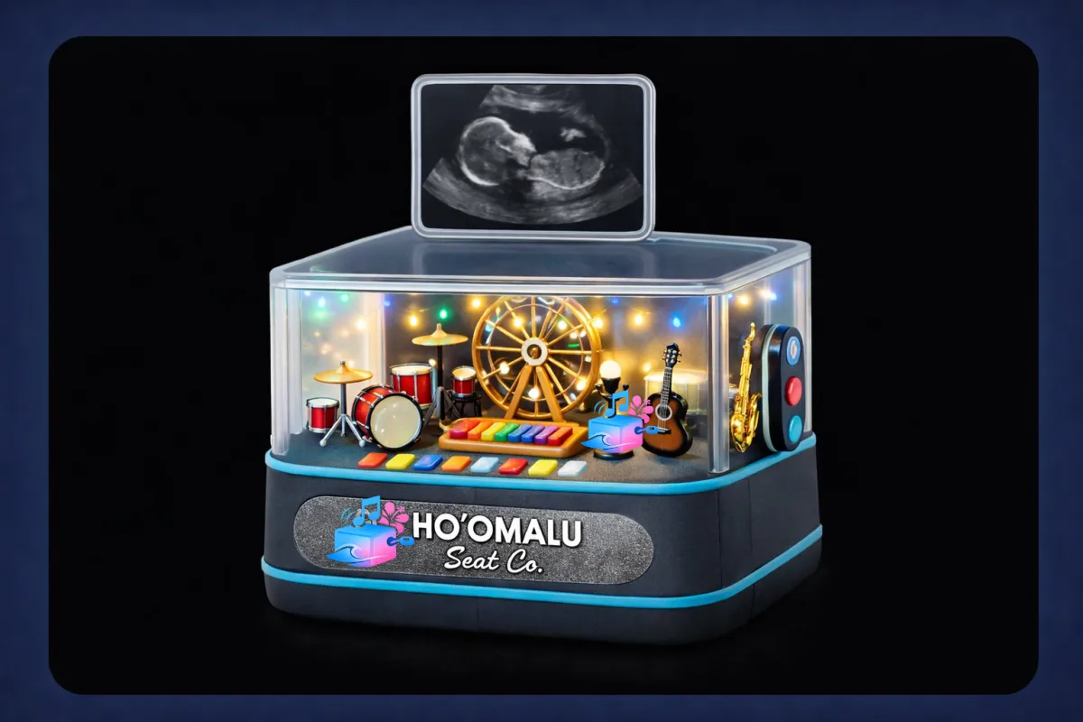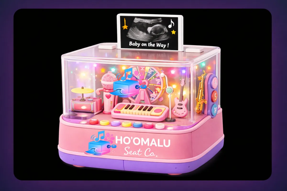 Where music, movement & imagination come alive. A patent-secured musical entertainment device with animated mini instruments, LED lights, custom melodies, and app-connected magic — designed for babies, loved by everyone.